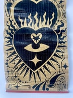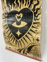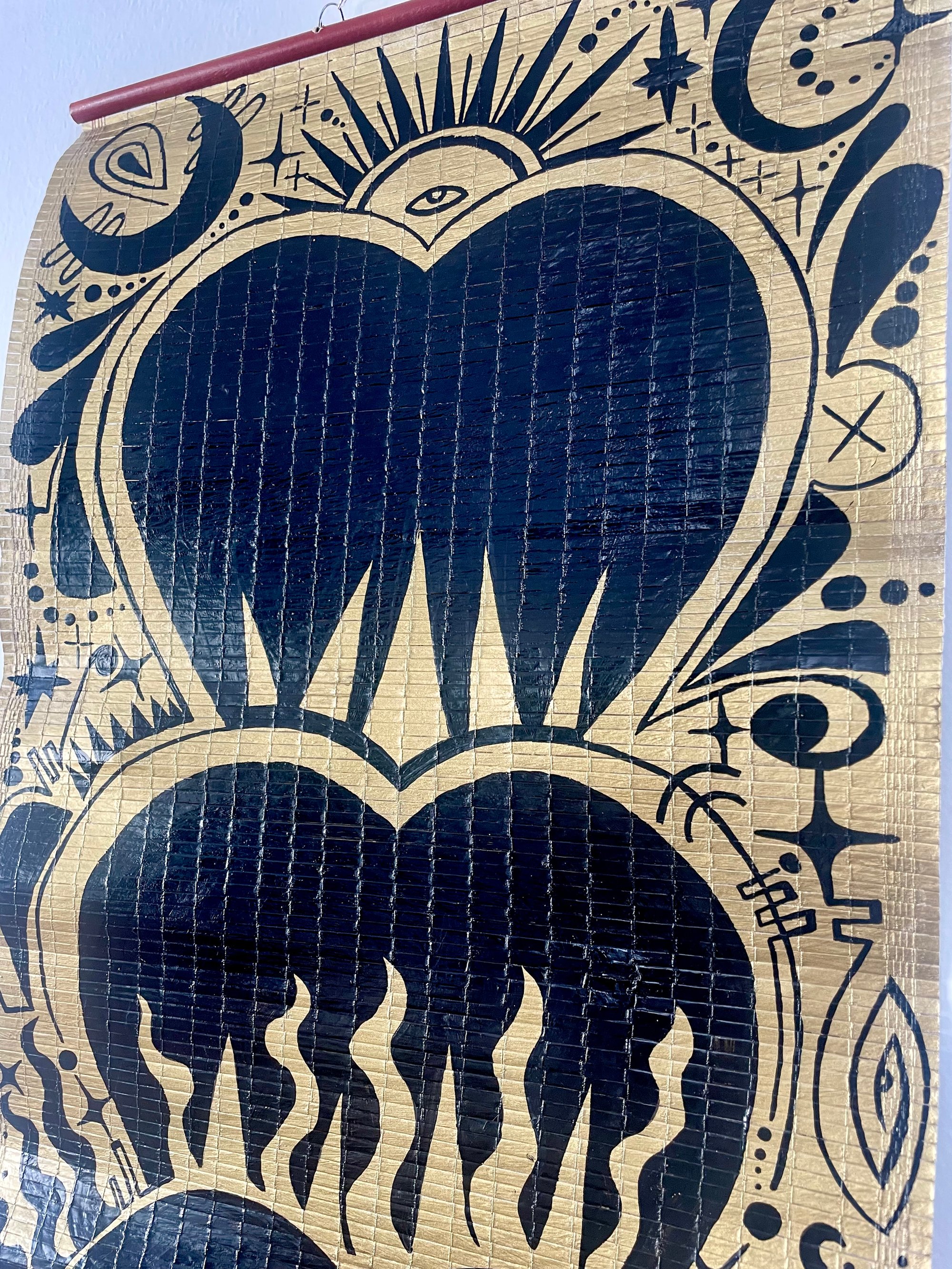 Spray paint and acrylic on reclaimed wall scroll calendar